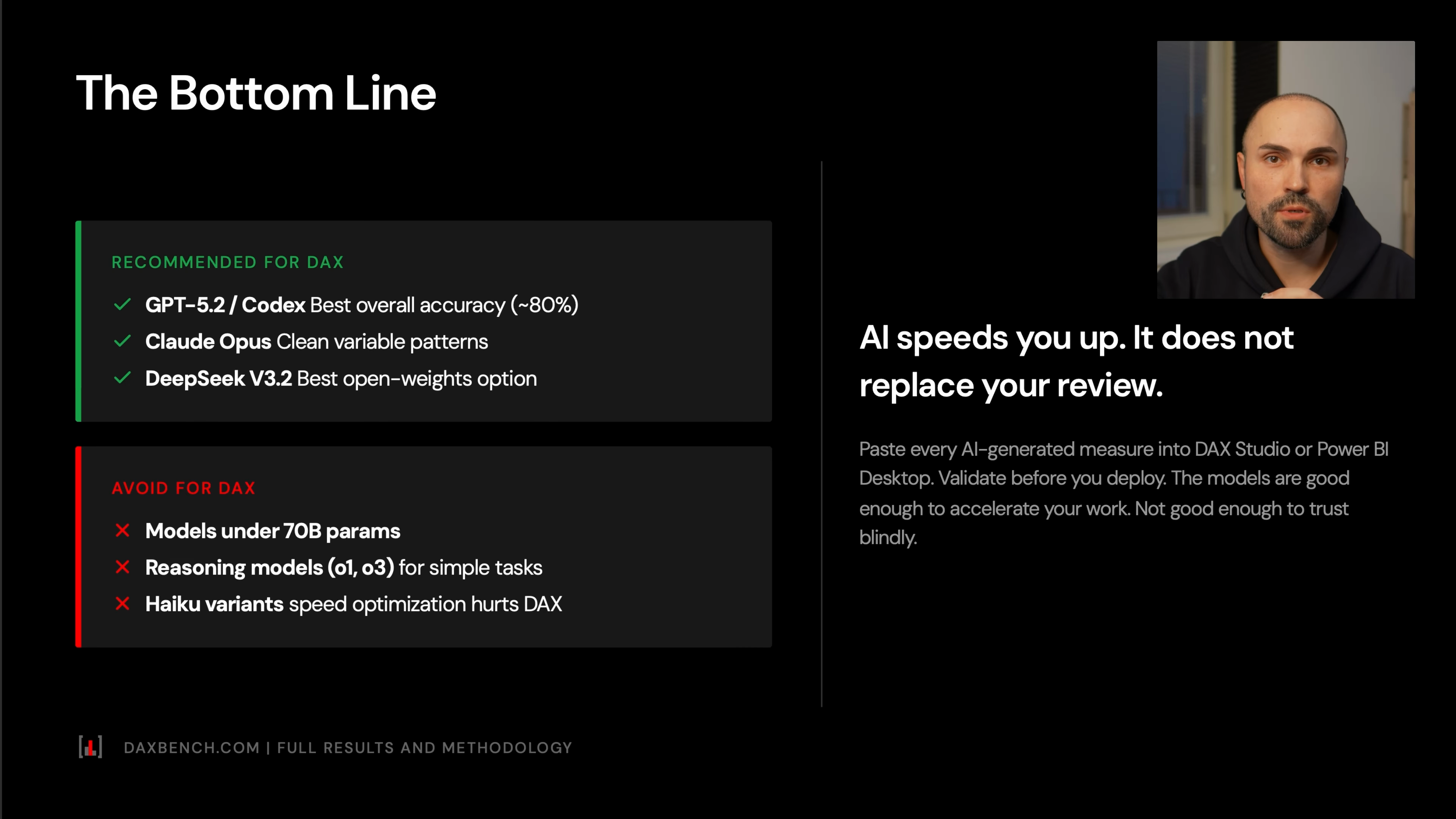 The broader rule is simple: AI should accelerate your DAX workflow, not replace your review.