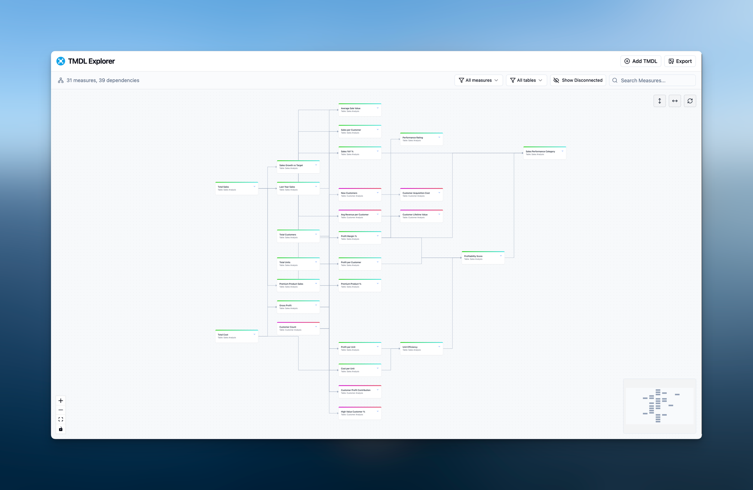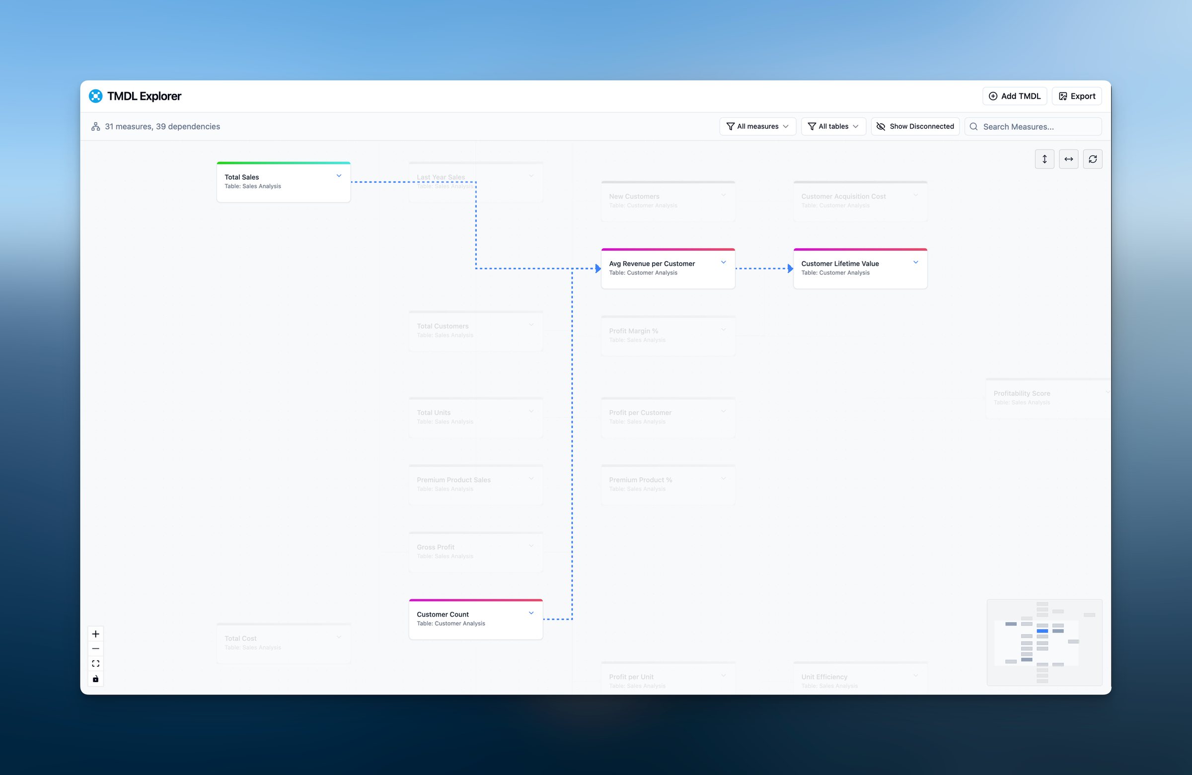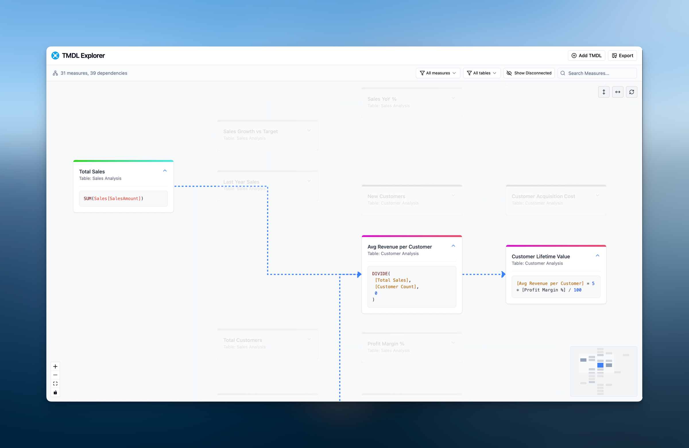 Since Microsoft introduced TMDL (Tabular Model Definition Language), I've been exploring practical applications beyond the obvious mass updates, adding descriptions, etc. And took a slight detour from the Theme Editor I'm working on to finish my other tool. Do you know that feeling when you have to step in into someone's shoes to understand "how does it all work here" onboarding into someone else's Report or Model? The more complex the model, the harder it becomes to understand all the inter-dependencies. And therefore I came up with TMDL Explorer: